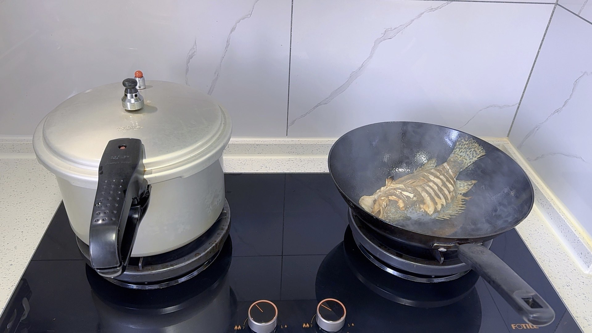 一个人两个锅,忙而不乱。